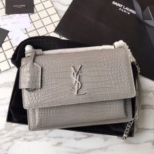 YSL圣罗兰 专柜最新款 前翻盖手袋 顶级原单小鳄鱼 22*16*8 浅灰
