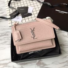 YSL圣罗兰 专柜最新款 前翻盖手袋 顶级原单小鳄鱼 22*16*8 粉色