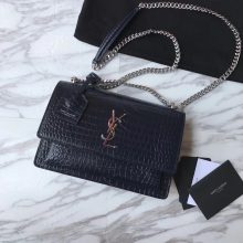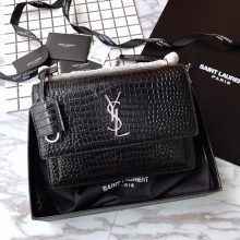 YSL圣罗兰 专柜最新款 前翻盖手袋 顶级原单小鳄鱼 22*16*8 黑色