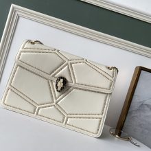 全套包装 BVLGARI 宝格丽 “衍缝网格”图案翻盖包 里外小羊皮 蛇身链