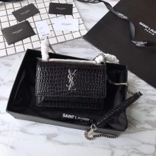 YSL圣罗兰 专柜最新款 前翻盖手袋 顶级原单小鳄鱼 17x13x9cm