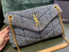 【¥1260】【最新牛仔纹】 LOULOU PUFFER 牛仔布纹小号绗缝包 29x17x11cm