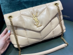 【¥1620】【正品原厂皮】 杏色小号金扣 LOULOU PUFFER 绗缝小羊皮包 29x17x11cm 奶油杏色温柔又细腻