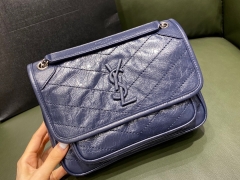 【¥1620】NIKI 22cm藏蓝色 进口抓皱油蜡牛皮 牛皮包裹着古铜银五金 22×16.5x12cm