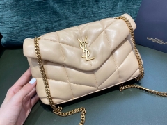 【¥1920】【正品原厂皮】 大号杏色金扣 LOULOU PUFFER 绗缝小羊皮包 35x23x13.5cm