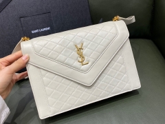 Gaby绗缝纹路信封斜挎包,全包内外均采用原厂小羊皮精心打造,造价成本极高!经典的Y家绗缝技术搭配进口独家定制Y家五金,让它颇有一番辨识度!包包整体手感相当舒适,柔软的肤质触感真的超级无敌nice!包内设有两个主隔层,一个拉链内袋,物品可分类收纳不怕乱糟糟!肩带特殊的“T”型五金设计是个小亮点,可将肩带单独拆下秒变手拿包!肩带可调节设计,多种背法随意切换!