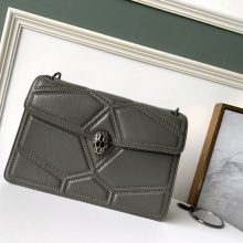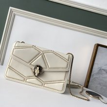 全套包装 BVLGARI 宝格丽 “衍缝网格”图案翻盖包 里外小羊皮 蛇身链