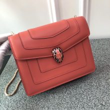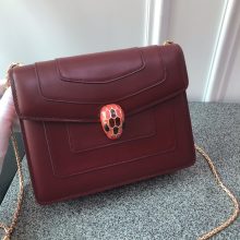 BVLGARI 宝格丽 全套包装 小牛皮翻盖包 内衬配羊皮 珐琅蛇头扣环 20/14/4.5cm 红色