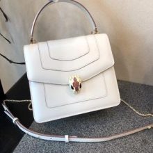 BVLGARI 宝格丽 老佛爷限量款蛇头包原版小牛皮搭配进口羊皮内衬 20cm 白色