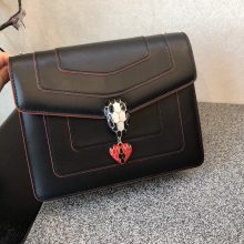 BVLGARI 宝格丽 Serpenti Forever 小牛皮翻盖包 内里羊皮 黑色 珐琅心形装饰 20/14/4.5cm