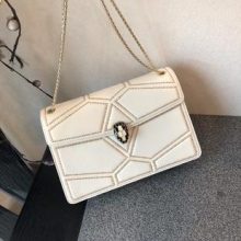 BVLGARI 宝格丽 Serpenti Forever系列 衍缝网格翻盖包 284173 里外小羊皮 白色