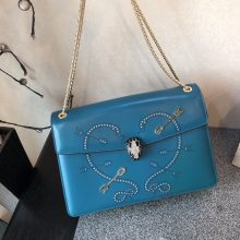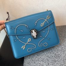 BVLGARI 宝格丽 Serpenti Forever 小牛皮翻盖包 内里羊皮 搭配“Pop-Heart”铆钉装饰 湖水蓝