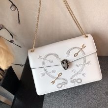 BVLGARI 宝格丽 Serpenti Forever 小牛皮翻盖包 内里羊皮“Pop-Heart”铆钉装饰 白色