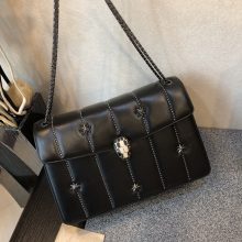 BVLGARI 宝格丽 里外小羊皮“Sepenti Forever”翻盖包 黑色 冬日星辰 284781