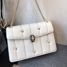 BVLGARI 宝格丽 里外小羊皮“Sepenti Forever”翻盖包 白色 冬日星辰 284781