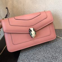 BVLGARI 宝格丽 全套包装 小牛皮翻盖包 内衬配羊皮 珐琅蛇头扣环 20/14/4.5cm 粉色