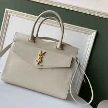 YSL 圣罗兰 UPTOWN大号镜面小牛皮手提包 可拆式磁扣信封手拿包 35/24/15cm 白色