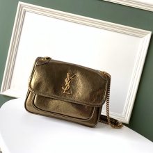 YSL 圣罗兰 Niki褶皱绗缝链条包 Niki小号沙革纹青铜金颜色 上身特有范儿 22/16.5/12cm