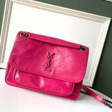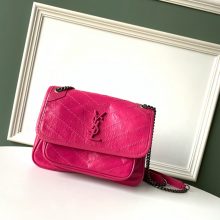 YSL 圣罗兰 Niki褶皱绗缝链条包 Niki中号 玫红色 颜色超级诱惑 28/20/9cm