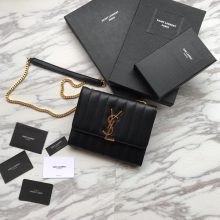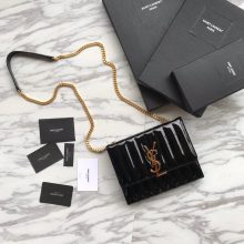 新款YSL圣罗兰VICKY绗缝LOGO翻盖按扣邮差包链条包单肩斜挎包 小号17.5×14.5x7cm