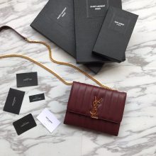 YSL 最新款 信封小包 活动锁扣 22*6*16cm 酒红色
