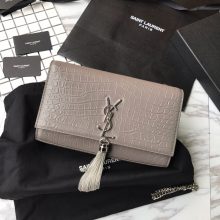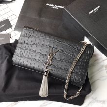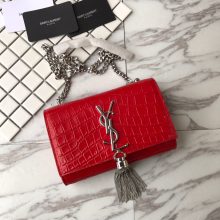 YSL圣罗兰 专柜最新 走秀款款原单鳄鱼纹流苏包 17*12.5*4.5