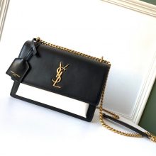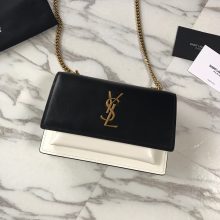 YSL圣罗兰 新款黑配白 金色金属 翻盖 顶级原单货 牙签纹 22cm