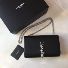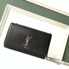 YSL 圣罗兰 原单鱼子酱 进口头层牛皮 354021 黑色 银扣 24cm