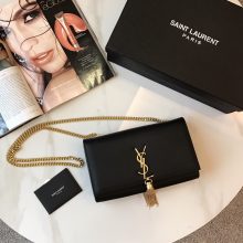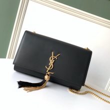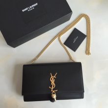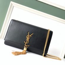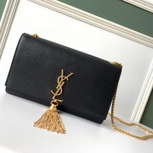 YSL 圣罗兰 YSL标志链条包 经典百搭 24cm 377829 黑色 金扣流苏款