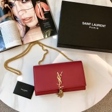 YSL 圣罗兰 24cm 经典 百搭KATE流苏链条包 377829 红色
