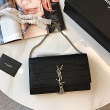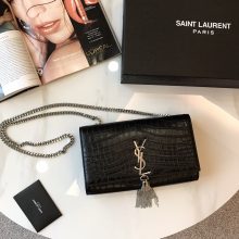 YSL 圣罗兰 原单 亮光 鳄鱼纹 流苏包 377829 对版五金 24cm 黑色