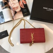 YSL 圣罗兰 原单 哑光 鳄鱼纹 流苏包 377829 对版五金 24cm 红色