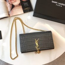YSL 圣罗兰 原单 亮光 鳄鱼纹 流苏包 377829 对版五金 24cm 灰色