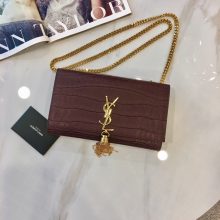 YSL 圣罗兰 原单 哑光 鳄鱼纹 流苏包 377829 对版五金 24cm 酒红色