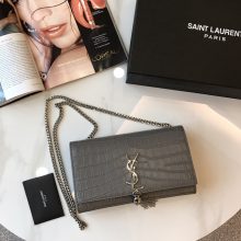 YSL 圣罗兰 原单 哑光 鳄鱼纹 流苏包 377829 对版五金 24cm 灰色