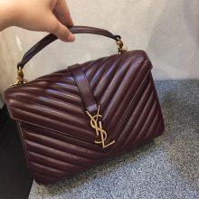 YSL 圣罗兰 MONOGRAM COLLEGE V型包 原单山羊纹 酒红色 金扣 392737 24cm
