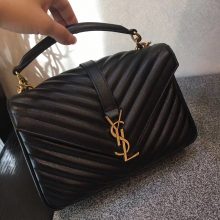 YSL 圣罗兰 MONOGRAM COLLEGE V型包 原单山羊纹 黑色 金扣 392737 24cm