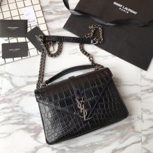 YLS圣罗兰 顶级原单经典中号鳄鱼纹手提包 欧洲进口原厂山羊皮 24cm