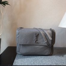 YSL 圣罗兰 超级爆款NiKi 大号32cm 全套包装 油蜡牛皮材质 浅灰色