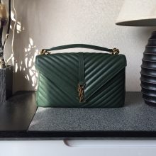 YSL 圣罗兰 原单山羊纹32cm 全套包装 392738 祖母绿 金扣 V型包 手提单肩两用