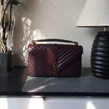 YSL 圣罗兰 原单山羊纹32cm 全套包装 392738 酒红 金扣 V型包 手提单肩两用