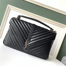 YLS圣罗兰 邮差包金色五金 顶级原单经典大号手提包 欧洲进口原厂山羊皮 32cm