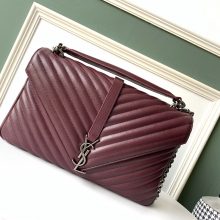 YSL 圣罗兰 原单山羊纹32cm 全套包装 392738 酒红 V型包 手提单肩两用