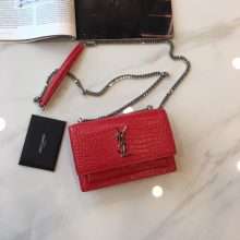 YSL 圣罗兰 Sunset链条包 原单鳄鱼纹牛皮 441943 红色 17/13/7cm