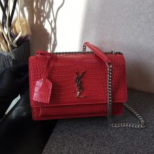 YSL 圣罗兰 Sunset链条包 原单鳄鱼纹牛皮 441971 红色 22/16/8cm