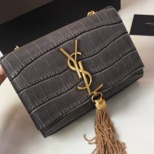 YSL 圣罗兰 原单哑光鳄鱼纹流苏包 对版开模 354120 厂家直销 17cm 灰色