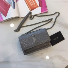 YSL 圣罗兰 Sunset链条包 原单鳄鱼纹牛皮 441943 灰色 17/13/7cm