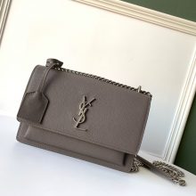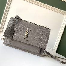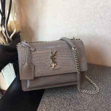 YSL 圣罗兰 鳄鱼纹 Sunset链条包 441971 22/16/8cm 灰色