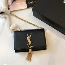 YSL 圣罗兰 YSL标志链条包 经典百搭 24cm 377829 黑色 金扣流苏款