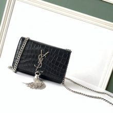 YSL圣罗兰 经典款 鳄鱼纹配金属 流苏包 链条包可当手包